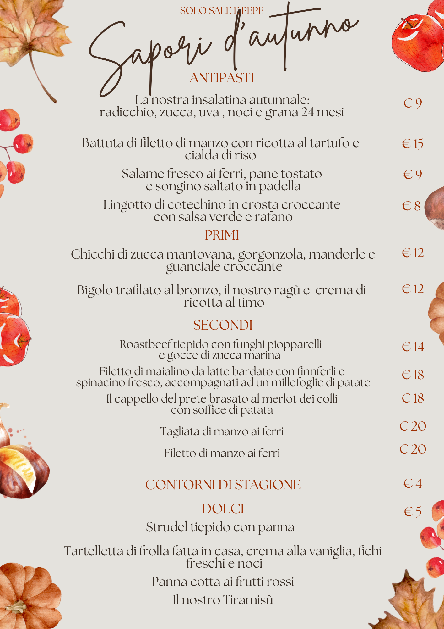 Ogni settimana proponiamo sfiziosi fuori menu' (antipasti da condivere, primi e secondi piatti) in base alla nostra produzione e ai prodotti freschi di stagione con alcune opzioni vegetariane.